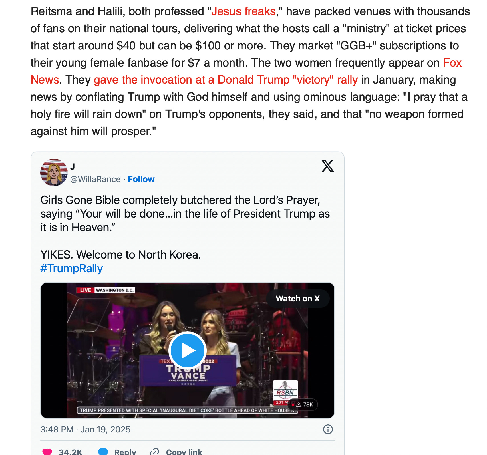 It's the Botkin girls just with MAGA esthetics and probably Right-wing dark money. It's two fairly attractive but failed actresses who found a cash grab like all C-listers who are milking whatever careers they have left by turning to conservatism. What is interesting is the razor thin line they are taking between being "pin up" MAGA "beauties" and Kari Lake/Caroline Leavitt/Kate Britt "tradwife" esthetic. Like every other facade around MAGA it's only a matter of time before the mask slips and the gravy train runs out.